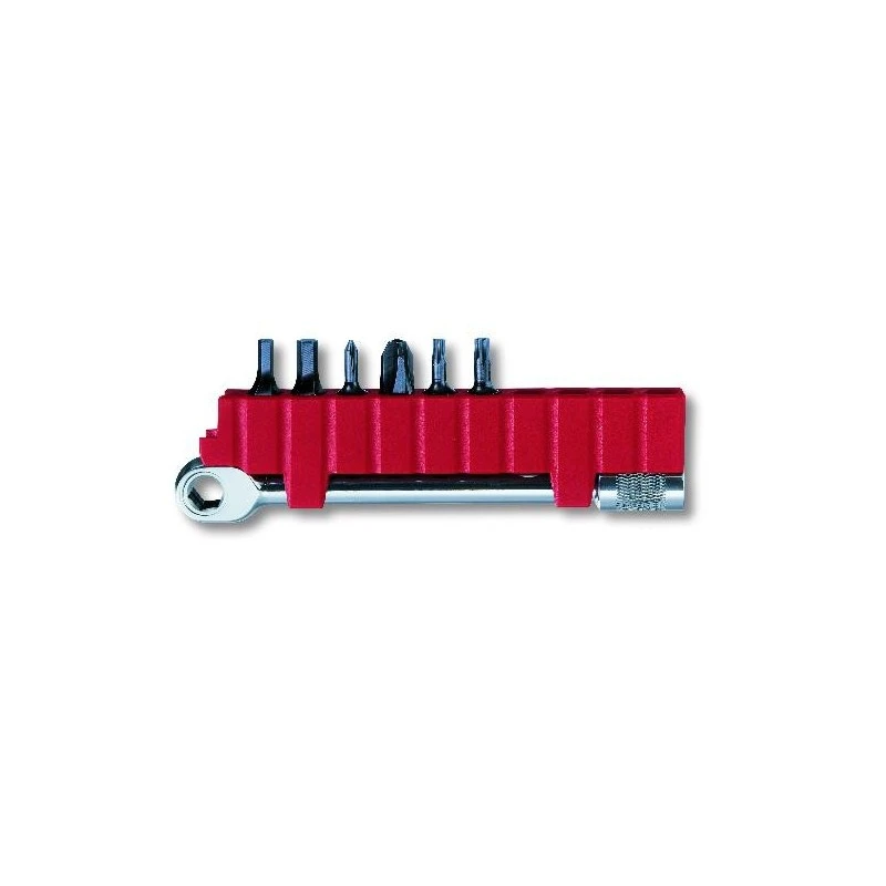 Ce boîtier support adaptateur complet se compose d’une clé à cliquet (30Nm) ainsi que 6 embouts tournevis différents dont la liste complète est détaillée ci-dessous. Compatible avec les SwissTool Victorinox, ce boîtier rouge en plastique permet de transporter facilement la clé à cliquet ainsi que les différents embouts : de quoi toujours avoir vos « outils » à disposition en cas de besoin. De plus, 4 emplacements vides sont également présents, de quoi rajouter les embouts que vous voulez !