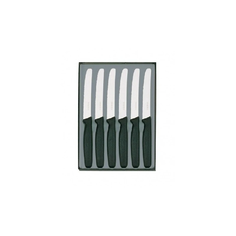 Ce coffret d’exception contient 6 couteaux de table Victorinox munis de manches noirs ergonomiques : vous pourrez toujours les attraper avec facilité, ils sont très agréables à utiliser au quotidien. Ces couteaux sont munis de lames en acier inoxydable 18/10 très tranchantes : elles peuvent tout découper avec la plus grande aisance. Ce coffret fera forte impression lorsque vous recevrez des invités à votre table. De plus, l’entretien sera également très facile du fait que ces couteaux de table Victorinox noirs sont compatibles avec le lave-vaisselle.