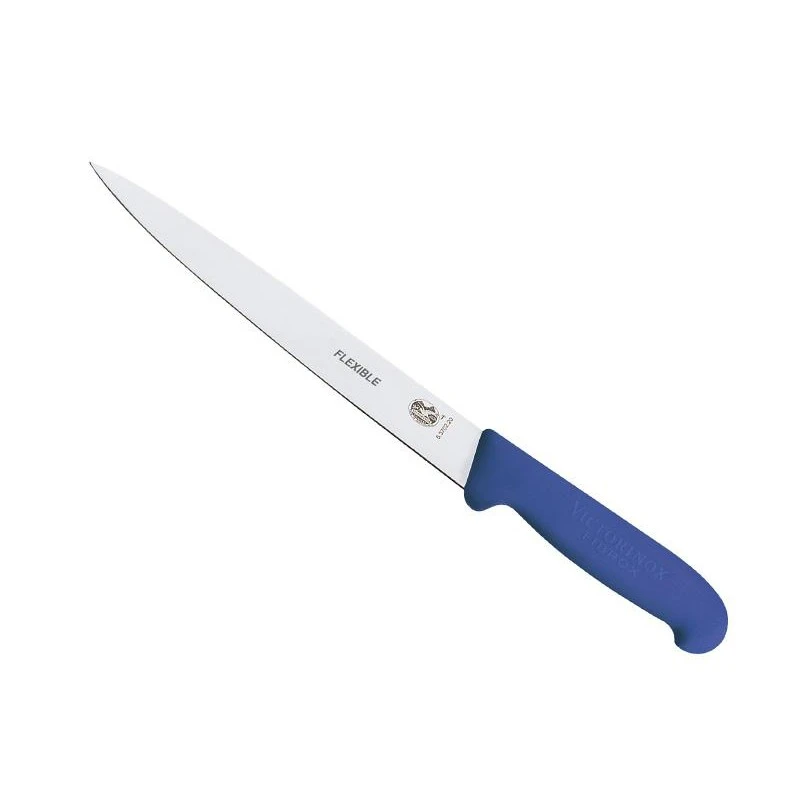 Ce couteau à dénerver Victorinox est idéal pour préparer les viandes : en effet, il se dote d’une longue lame flexible en acier inoxydable de 20cm de long servant à retirer les nerfs et tendons. De plus, ce couteau permet également de travailler les filets de sole : il possède une manche bleu en fibrox très ergonomique assurant à la main de ne jamais glisser, de quoi limiter énormément les risques de blessure.