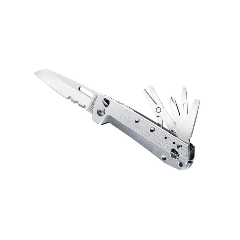 Le Leatherman Free K4X Silver brille une nouvelle fois pour sa forte polyvalence, avec un total de 9 outils différents. On retrouve les outils propres au Leatherman Free K4, à savoir les tournevis, le décapsuleur, le levier, le découpe blister ou encore les ciseaux actionnés par ressort. Si l’outil lame est également de la partie, sur le Free K4X, elle est dite combo, autrement dit avec bord lisse ainsi que cranté pour plus de polyvalence. Rappelons que la lame est fabriquée en acier inoxydable HC420, elle est ajourée. Bricolage, usage quotidien, Outdoor, le couteau multifonction Leatherman Free K4X vous sera d’une grande utilité en bons nombres de circonstances !