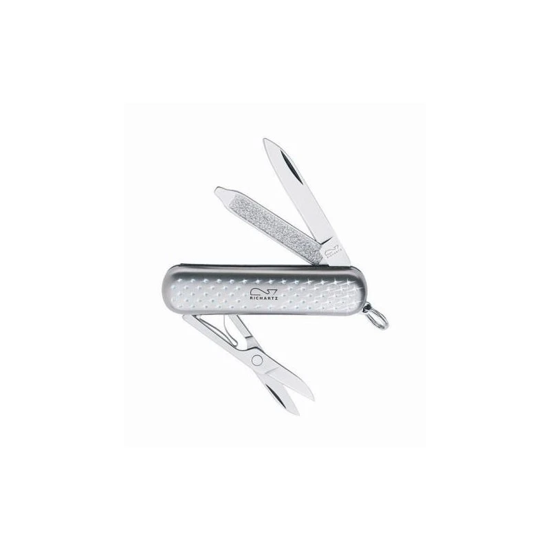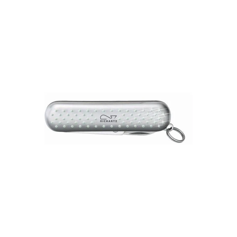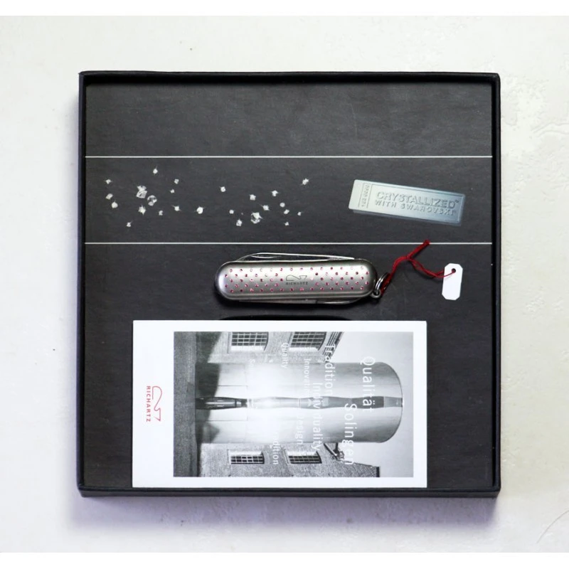 Ce canif résulte de la collaboration entre Victorinox (qui fabrique les corps) et Richartz (qui habille les côtes). Ce modèle de couteau est incrusté de 136 cristaux verts Swarovski qui en font un véritable accessoire de mode!