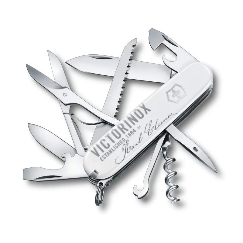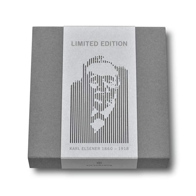Le 26 décembre 2018, cela fera exactement 100 ans que Karl Elsener est décédé, le fondateur de la coutellerie Victorinox. Pour cette occasion très spéciale, la marque Suisse lui rend hommage avec l’un des modèles les plus prisés : le Victorinox Huntsman. Habituellement rouge, le couteau suisse possède une paire de côtes blanche décorée par la signature de Karl Elsener au recto. Le verso est lui marqué par la date de naissance et de décès du fondateur de Victorinox avec en arrière-plan son portrait.