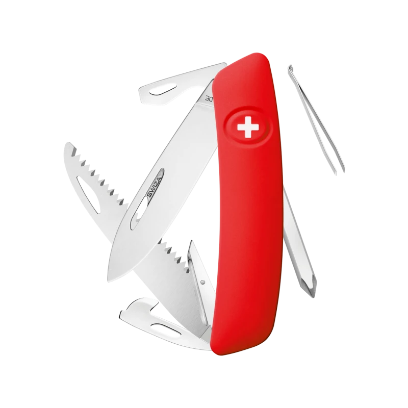 Avec sa scie très coupante en plus, le couteau suisse Swiza D06 est le grand frère du D04. Toujours Ă©quipĂ© d’une grande lame, d’un dĂ©capsuleur-tournevis, d’un ouvre-boĂ®tes avec tournevis, d’un tournevis Philips, d’une alĂŞne coupante avec poinçon et aiguille Ă chas ainsi que d’une pincette, le D06 est un multifonction complet qui rĂ©pondra Ă un grand nombre de situations.Â