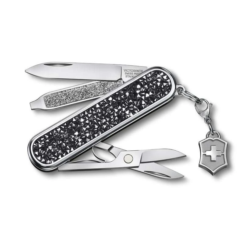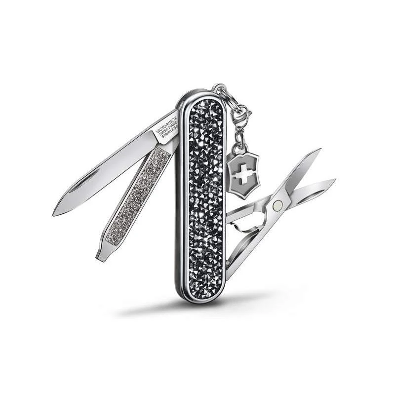 Outre son design attrayant du fait des incrustations de cristaux, le Victorinox Classic SD Brilliant Crystal se dote de 5 fonctions s’avérant être d’une grande utilité au quotidien. Tournevis, ciseaux, lime à ongles et petite lame font notamment partie du panel d’outils du canif. La lame est personnalisable par gravure en option.
