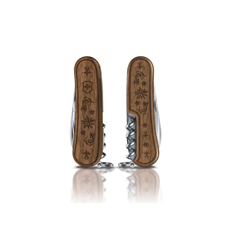 Le Victorinox EvoWood 10 Swiss Spirit, édition limitée 2019, est un couteau suisse qui incarne parfaitement bien les symboles et traditions des racines Alpines. Son manche en bois noyer comprend notamment un beau design Edelweiss découpé au laser, on peut également observer la croix Suisse Victorinox. Rappelons que l’Edelweiss est une célèbre fleur de montagne. Limité à 5000 exemplaires dans le monde entier, cet EvoWood 10 Swiss Spirit va beaucoup plaire grâce à son design raffiné. Sa poignée en noyer est recouverte de motifs ce qui lui confère de l’allure. Longueur de 85mm pour une facilité de port à toute épreuve, c’est d’autant plus vrai par la présence d’un outil anneau en bout.