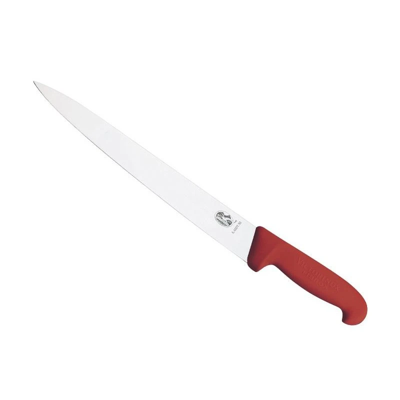La version rouge du couteau tranchelard Victorinox à manche fibrox
