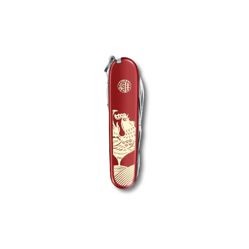 Si ce couteau suisse Huntsman Année du Coq est si prisé pour la chasse, c’est aussi pour son excellente transportabilité en toutes circonstances. En effet, son manche rouge avec décoration coq doré ne mesure que 91mm de longueur pour un poids de 97 grammes, le glisser dans une petite poche ou un sac à dos sera un véritable jeu d’enfants. Vous ne ressentirez aucune gêne durant vos parties de chasse tant son poids est faible. Pratique, le petit anneau en inox vous permettra de toujours avoir votre couteau suisse Huntsman sous la main en l’accrochant à votre trousseau de clefs comme un porte-clés.