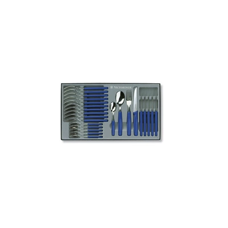En plus d’être élégant, ce coffret de table Victorinox est également très complet : il pourra s’offrir sans hésiter pour toutes les occasions. Il se compose de 24 pièces toutes dotées de manches bleus ergonomiques : vous pourrez les utiliser au quotidien sans ressentir de fatigue tant ils sont agréables à manipuler. Il faut également souligner le fait que tous les couverts Victorinox (couteaux, fourchettes, cuillères à soupe & café) sont conçus en acier inoxydable 18/10, un matériau de très haute qualité. Très pratiques, toutes les pièces sont compatibles avec le lave-vaisselle : l’entretien est très simple au quotidien.