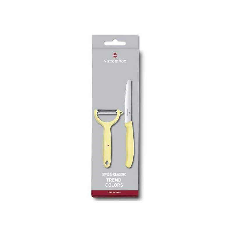 Ce duo Swiss Classic Trend Colors comprenant un couteau à tomates à lame dentée de 11cm ainsi qu’un éplucheur manche Y est idéal pour offrir à quelqu’un appréciant cuisiner les fruits et légumes. Quand l’efficacité et le design se rencontrent … Autres coloris disponibles sur la boutique.